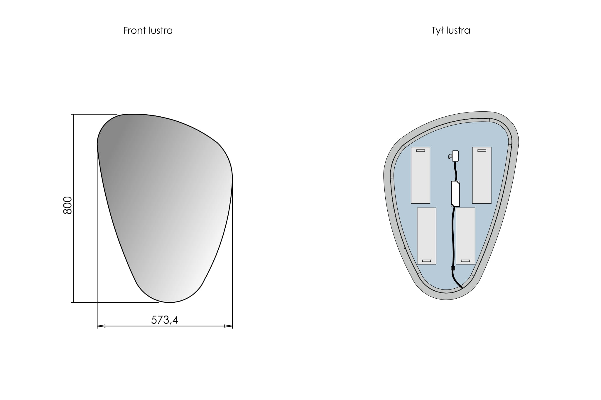 Lustro dostarczane jest w opakowaniu zaprojektowanym tak, aby chronić je w trakcie transportu. Po rozpakowaniu można od razu przystąpić do montażu, ponieważ w komplecie znajdują się wszystkie niezbędne elementy i zasilacz LED przygotowany do podłączenia.