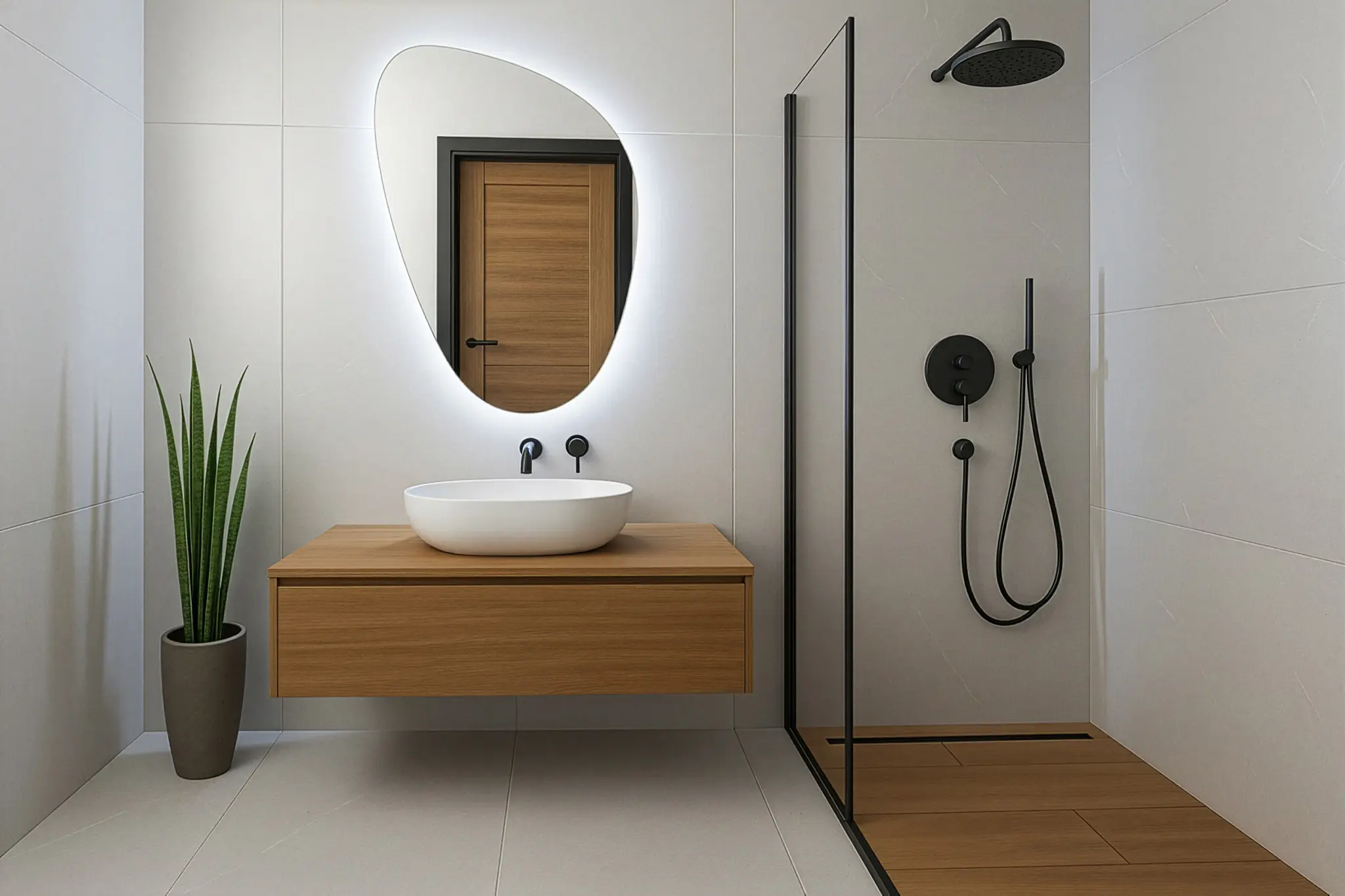 SP33 to propozycja dla osób, które lubią odejść od klasycznego kształtu lustra. Nieregularna, miękko wygięta forma sprawia, że ten model przyciąga wzrok od razu po wejściu do pomieszczenia. Sprawdzi się zarówno w łazienkach, jak i w pokojach, w których dekoracyjne oświetlenie pełni ważną rolę. Źródło LED oparte na diodach COB daje przyjemne i równomierne światło, a możliwość wyboru jego barwy pozwala dopasować efekt do codziennych potrzeb.